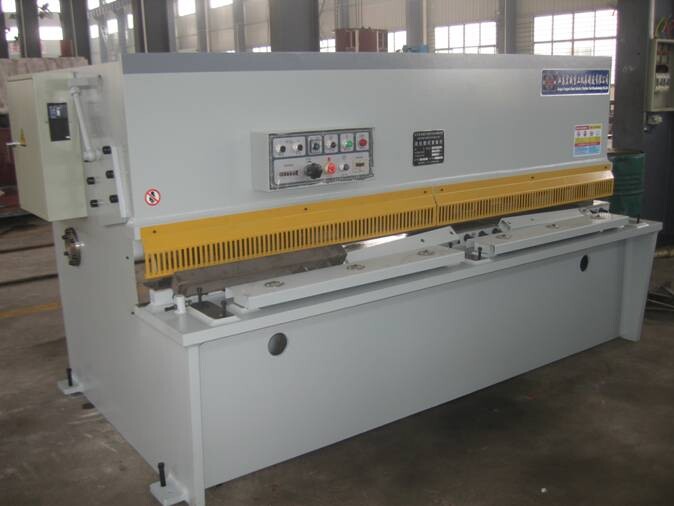 — — 性 能 特 點 — — ● 該剪板機采用鋼板焊接結(jié)構(gòu),液壓傳動,蓄能器回程,操作方便,性能可靠,外形美觀。 ● 刃口間隙調(diào)整有指示牌指示,調(diào)整輕便迅速。 ● 設(shè)有燈光對線裝置,并能無級調(diào)節(jié)上刀架的行程量。 ● 采用柵欄式人身安全保護裝置。 ● 后擋料尺寸及剪切次數(shù)有數(shù)字顯示裝置。